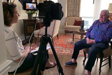 The children of Austin philanthropists Dick and Sara Rathgeber recently had Myers record their family stories as a Christmas gift to their parents, just before Dick’s 90th birthday. Known as one of the most generous men in Austin, Rathgeber says that he and Sara, his wife of 63 years, have given roughly half of their annual income to charity every year for over 40 years—amounting to a few hundred million dollars-worth of giving, which has set unfathomable positive changes into motion. Rathgeber is the author of the book Deal-Making For Good: Smart Giving = Significant Living, and together, he and Sara have supported a wide range of organizations including TLU, the Salvation Army, Austin’s Dell Children’s Medical Center, the SAFE Alliance, Meals on Wheels, and Manos de Cristo, to name a few.