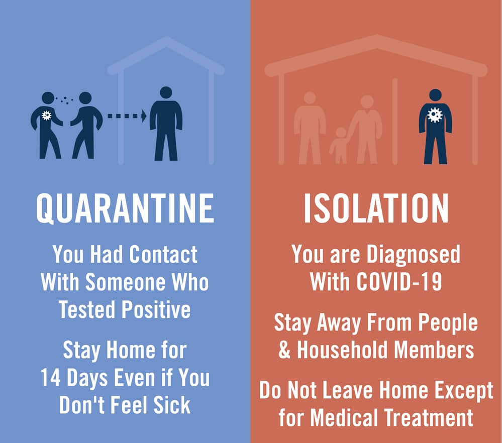 Isolation separates people who are infected with the virus away from people who are not infected.