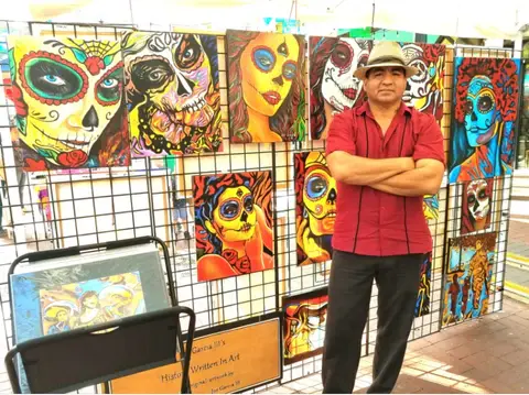 As with many artists, Garcia grew up sketching familiar surroundings on a daily basis. In 2004, he decided to pursue his passion at the postsecondary level. _is advanced level of study lead to the development of his current style. Now, he strives to bring the colors and beauty of his multi-cultural heritage to the viewer.
