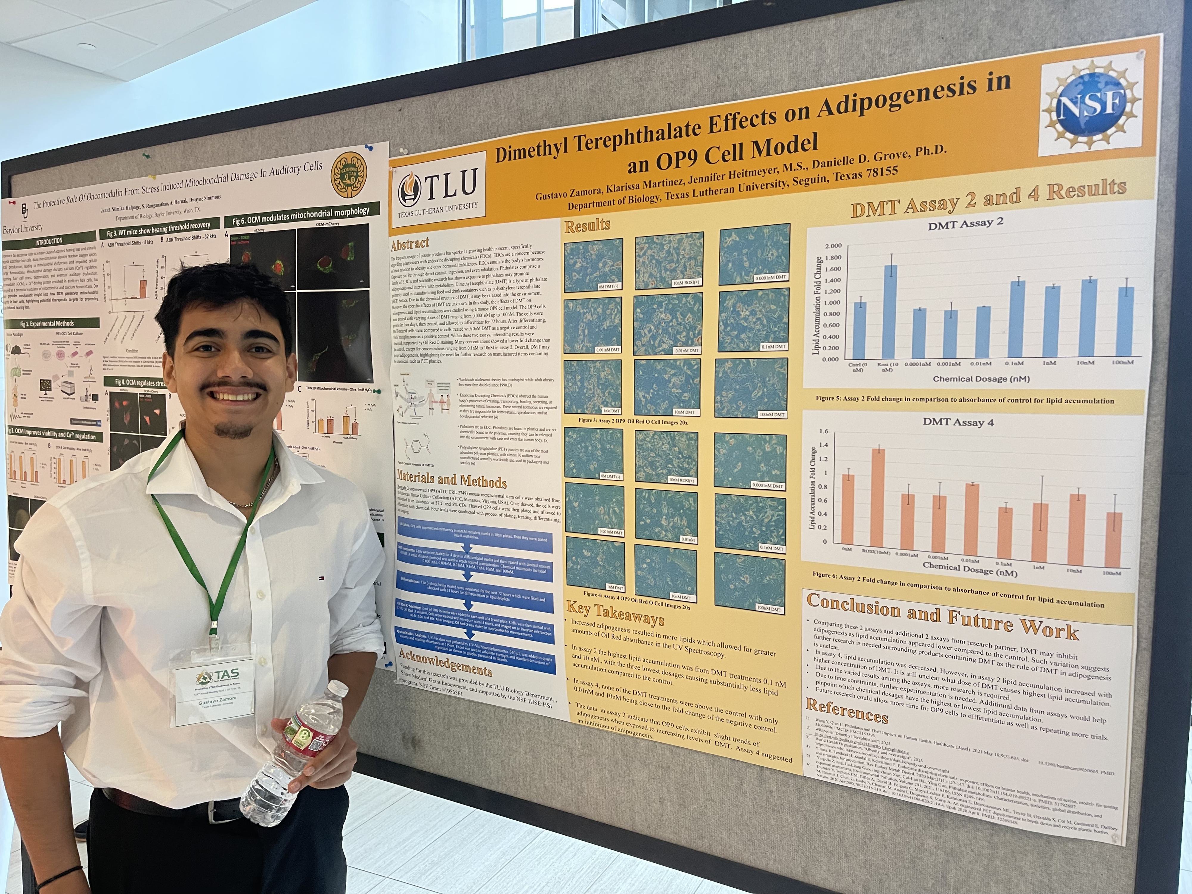 In the Cell and Molecular Biology category, three TLU students swept the awards: Gustavo Zamora tied for first place, Natalie Osina tied for second place, and Ryan Trevino was awarded third place. In the Chemistry and Biochemistry category, Sage Bartlett tied for second place.