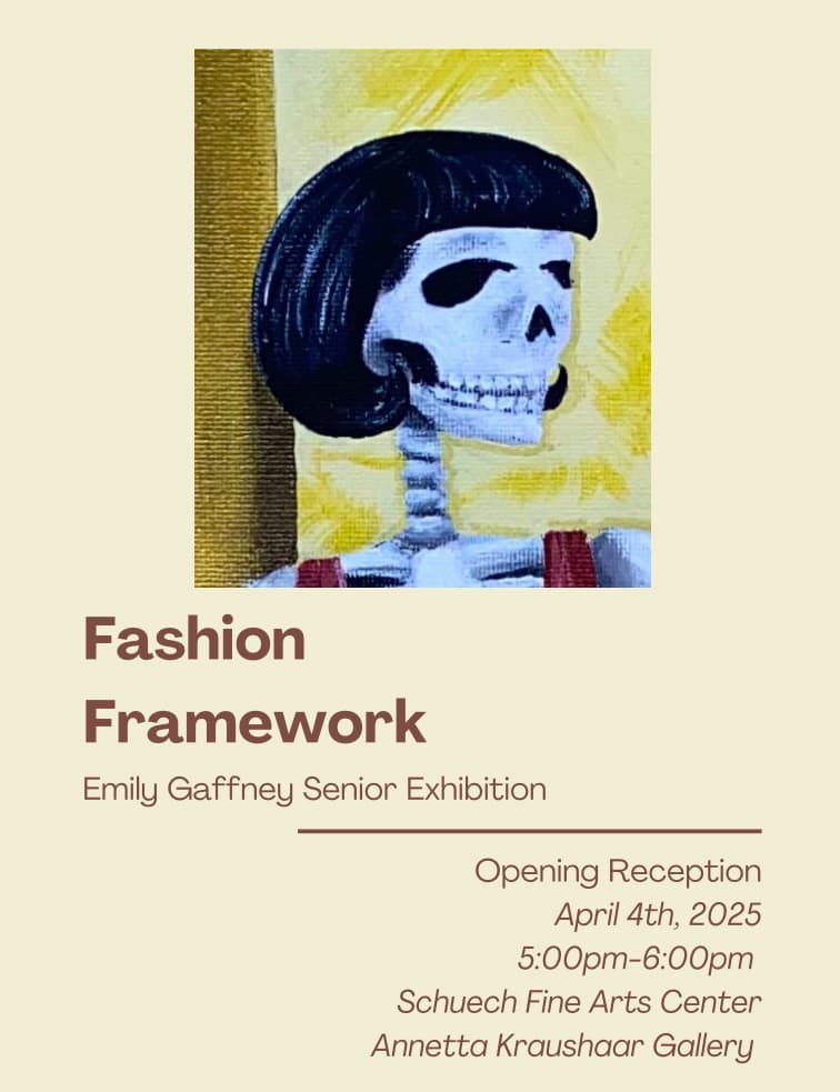 Senior Texas Lutheran University art major Emily Gaffney has managed both—and her show, entitled “Fashion Framework,” opens at the university’s Annetta Kraushaar Gallery on Friday, April 4, with a reception from 5 to 6 p.m.