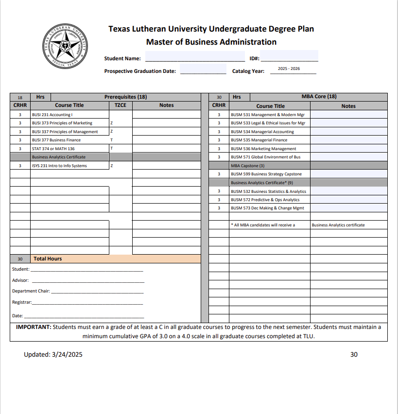 View the MBA Degree Plan Here